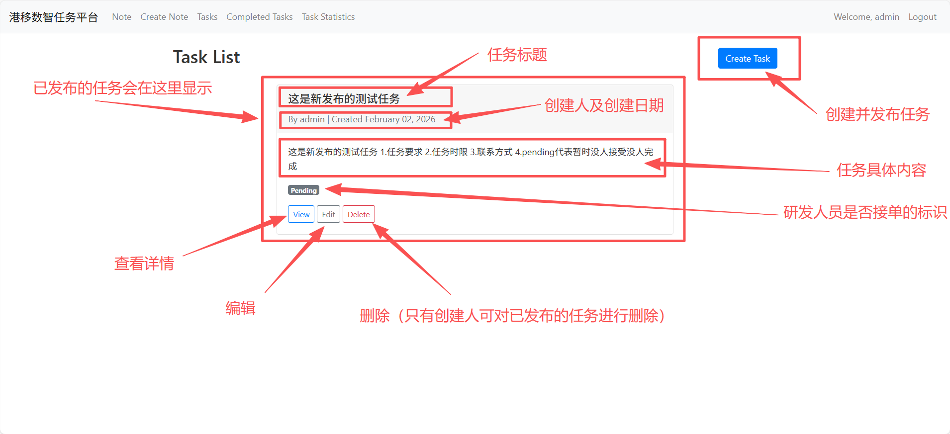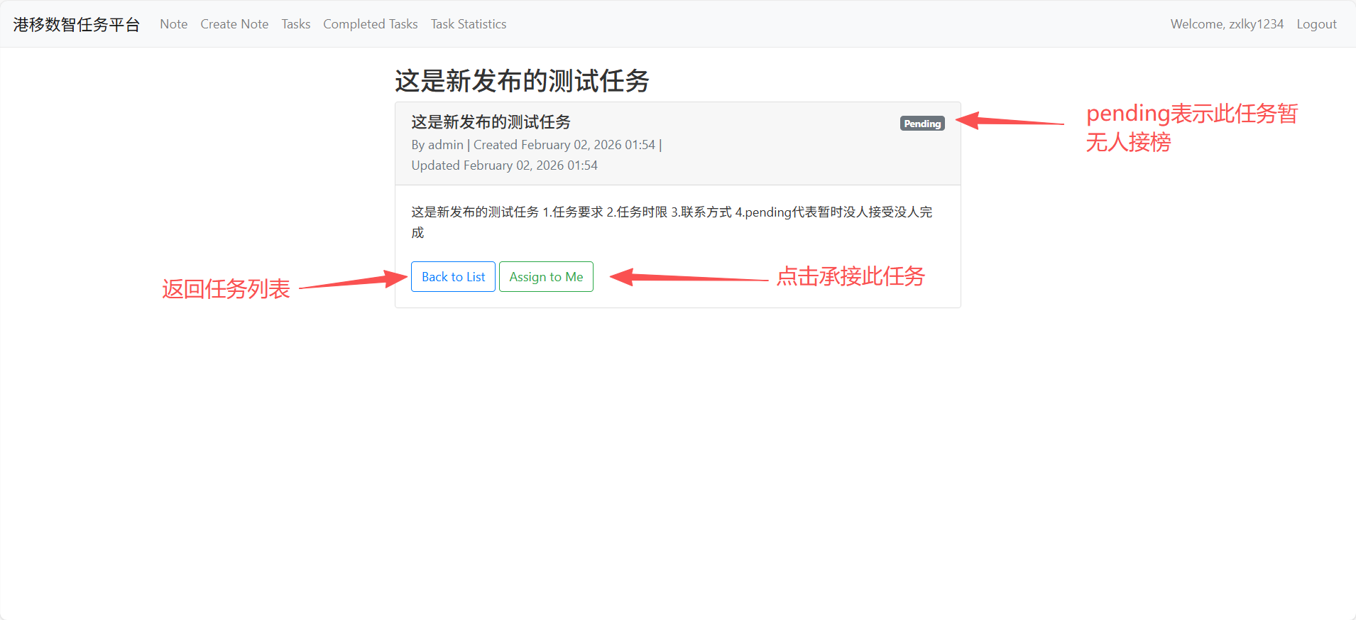 从此功能界面,所有用户登录后可以查看到已发布/未完成的任务详情列表矩阵。具体信息如下图所示👇